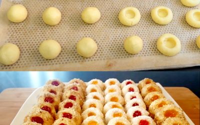 Składniki: 100 g cukru, 250 g masła, 150 g dżemu z marakui , cukier puder, 350 g mąki pszennej, 100…