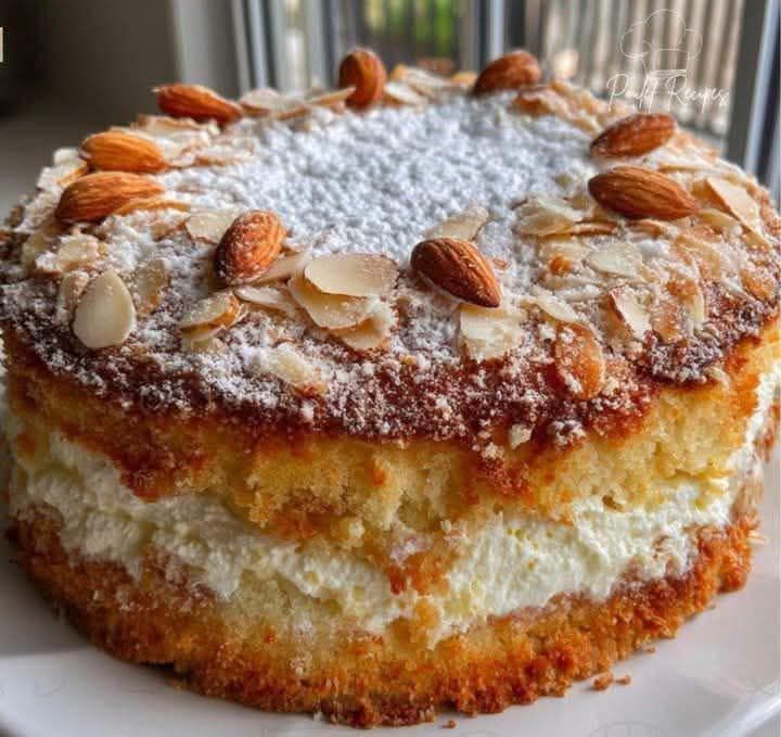 Miękkie ciasto z kremem i migdałami