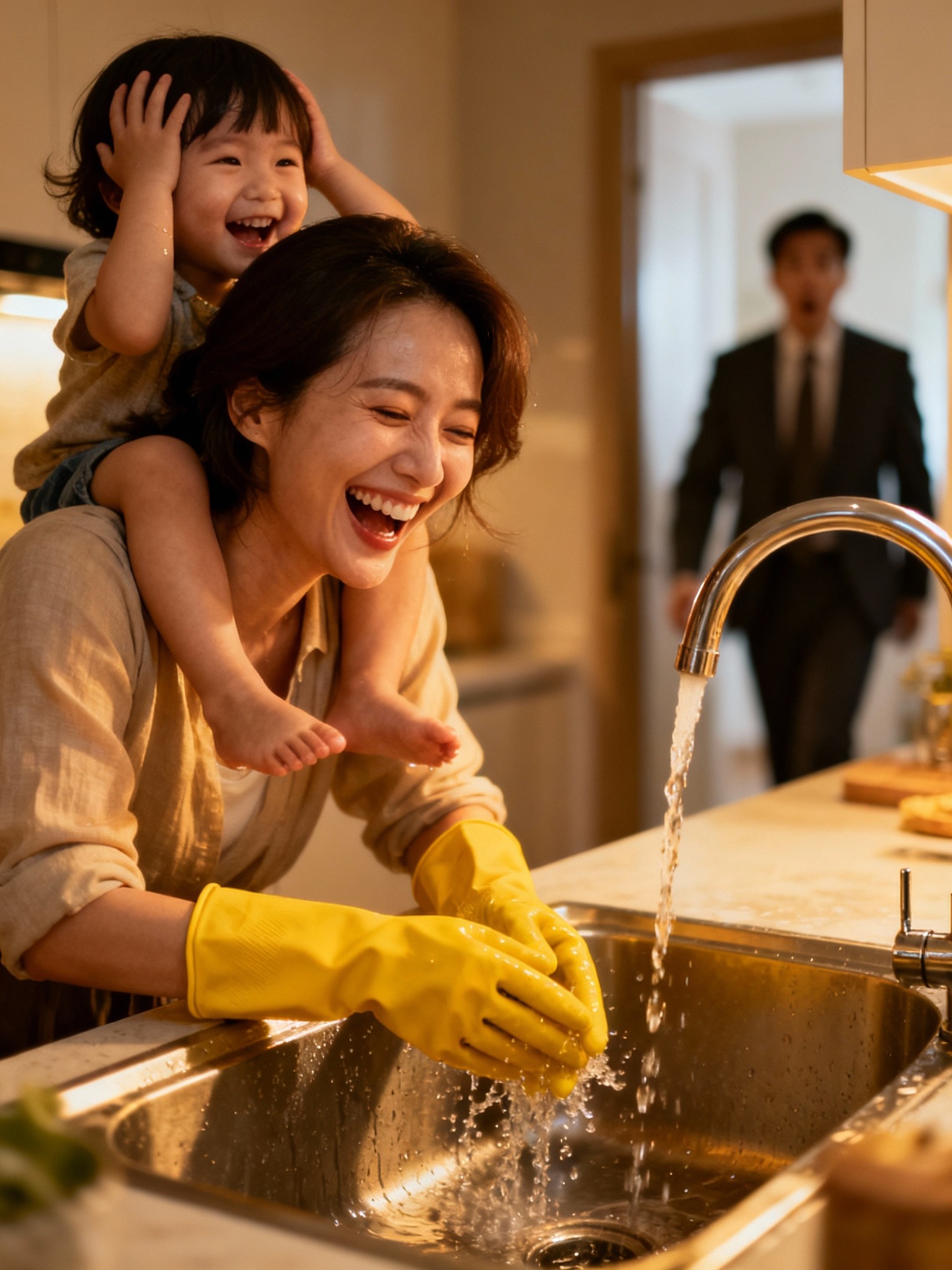Ava siedziała na solidnym drewnianym krześle, zanurzając drobne dłonie w mydlanej wodzie obok młodej kobiety, którą Michael zazwyczaj mijał, nie zwracając na nią uwagi. Paige Collins, nowa pomoc domowa, zaśmiała się cicho, prowadząc dłonie Avy nad talerzem.