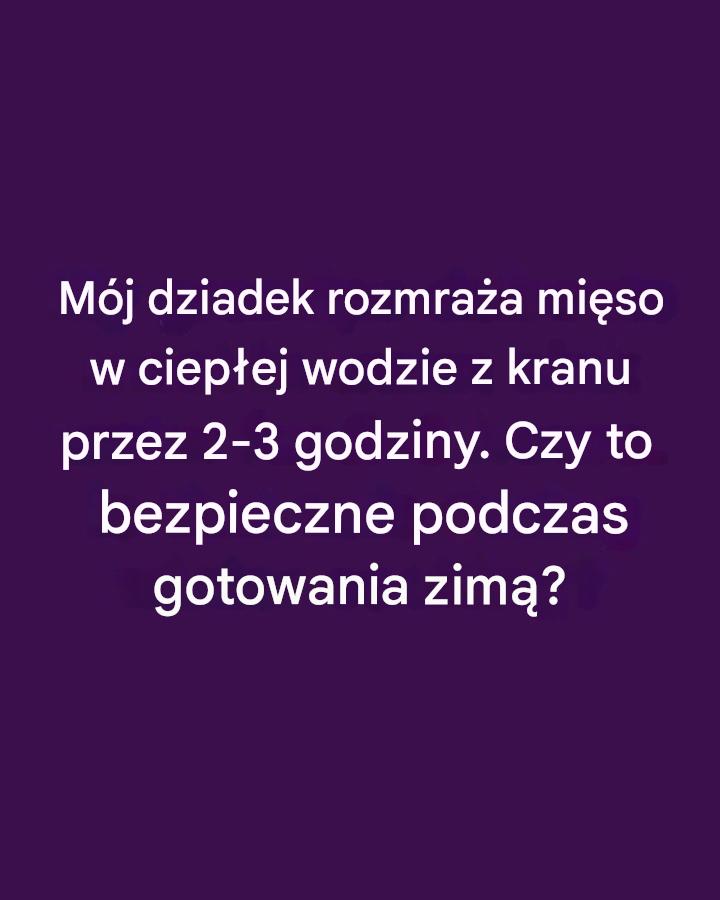 Mój dziadek rozmraża mięso w ciepłej wodzie z kranu przez 2–3 godziny. Czy to bezpieczne podczas gotowania zimą?