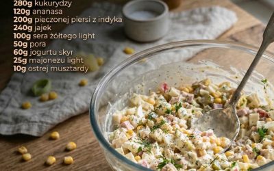 Składniki 1 słoik (ok. 300 g) selera konserwowego 1 puszka (ok. 280 g) kukurydzy 4 plastry ananasa 200 g pieczonej…
