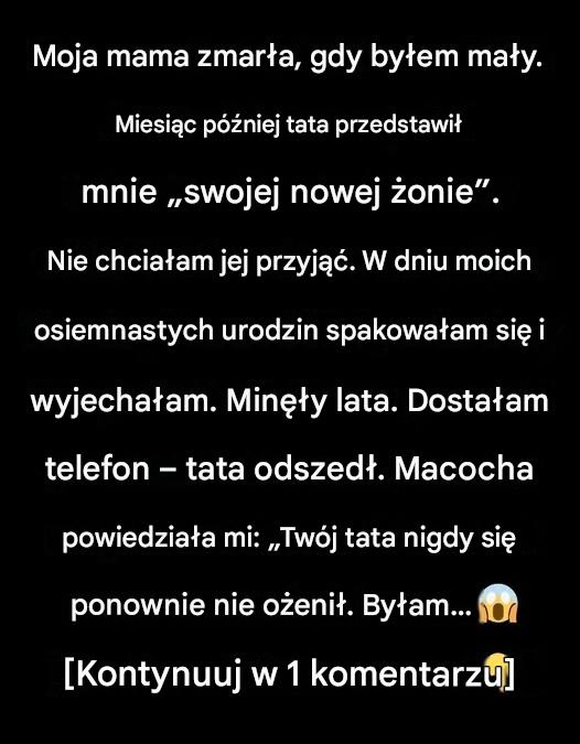 Minęły lata. Dostałem telefon – tata odszedł. Poleciałem do domu na pogrzeb. Po nabożeństwie podeszła do mnie macocha i powiedziała: „Musisz mi coś powiedzieć”.