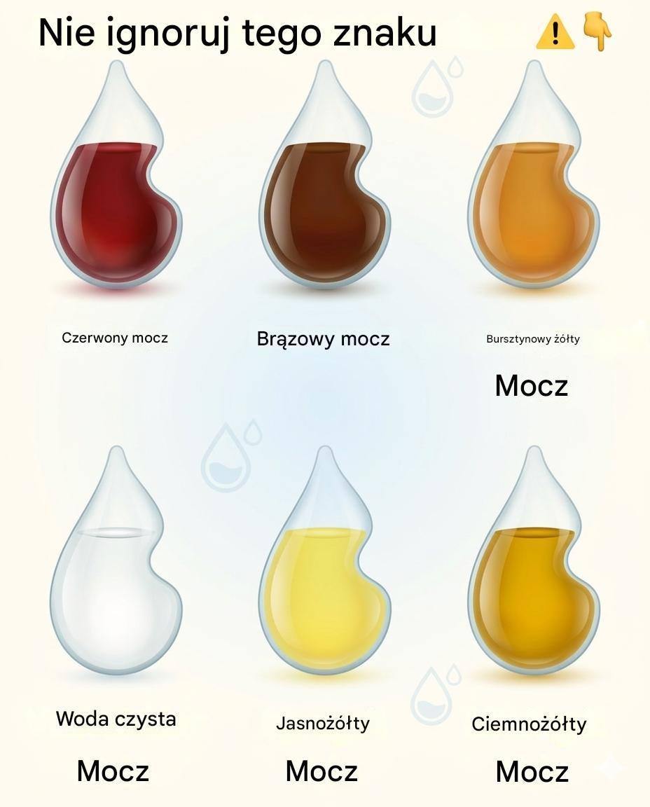 Ciemnożółty kolor może być oznaką potrzeby picia większej ilości płynów. Organizm zagęszcza mocz, gdy brakuje mu wystarczającej ilości wody.