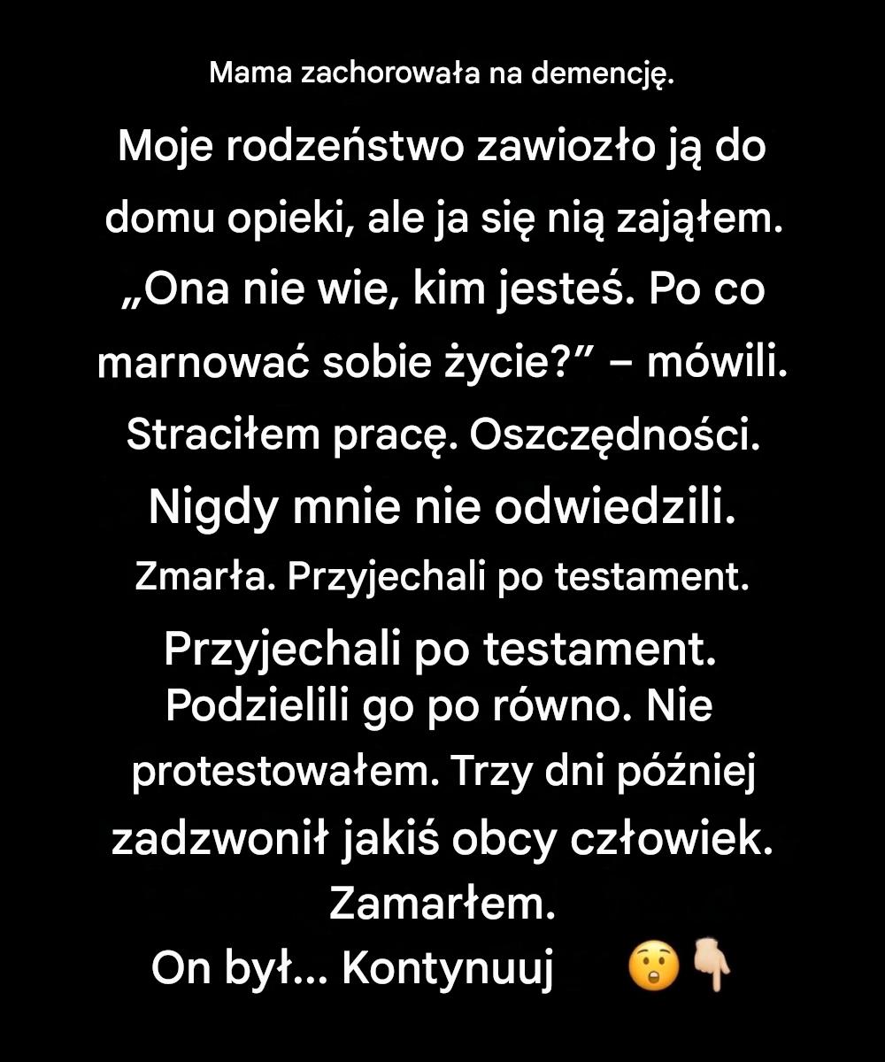 Moje rodzeństwo zareagowało szybko i sprawnie. Rozmawiali o udogodnieniach, listach oczekujących, miesięcznych kosztach – kwoty przekazywane sobie nawzajem jak liczby w biznesie. Milczałem, bo już wiedziałem, jakiej odpowiedzi udzielę.
