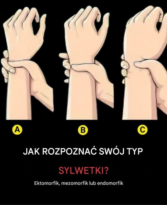 Czy wiesz, że Twój typ sylwetki może wpływać na to, jak ćwiczysz, jesz i żyjesz? Poniższy rysunek pokazuje, jak szybko określić, czy jesteś ektomorfikiem, mezomorfikiem czy endomorfikiem, na podstawie stosunku palców do nadgarstka. Poniżej przyjrzymy się, co obejmuje każdy typ sylwetki, jakie są jego podstawowe cechy i jak najlepiej go wykorzystać.