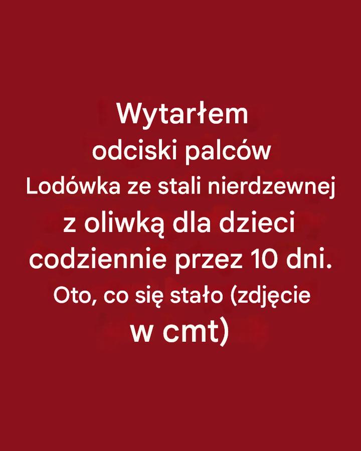 Przed rozpoczęciem eksperymentu dokładnie umyłam lodówkę ciepłą wodą z mydłem, aby usunąć wszelkie zabrudzenia, odciski palców i pozostałości po poprzednich środkach czyszczących. Wytarłam ją czystą ściereczką z mikrofibry, upewniając się, że powierzchnia jest nieskazitelna i gotowa do testu. To przygotowanie było kluczowe, ponieważ czyszczenie powierzchni od razu po wyczyszczeniu pozwoliłoby mi dokładnie ocenić skuteczność olejku dla dzieci w ciągu dziesięciu dni.