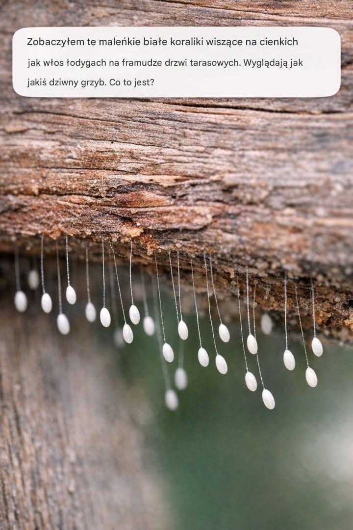 Zobaczyłem te maleńkie białe koraliki wiszące na cienkich jak włos łodygach na framudze drzwi tarasowych. Wyglądają jak jakiś dziwny grzyb. Co to jest?