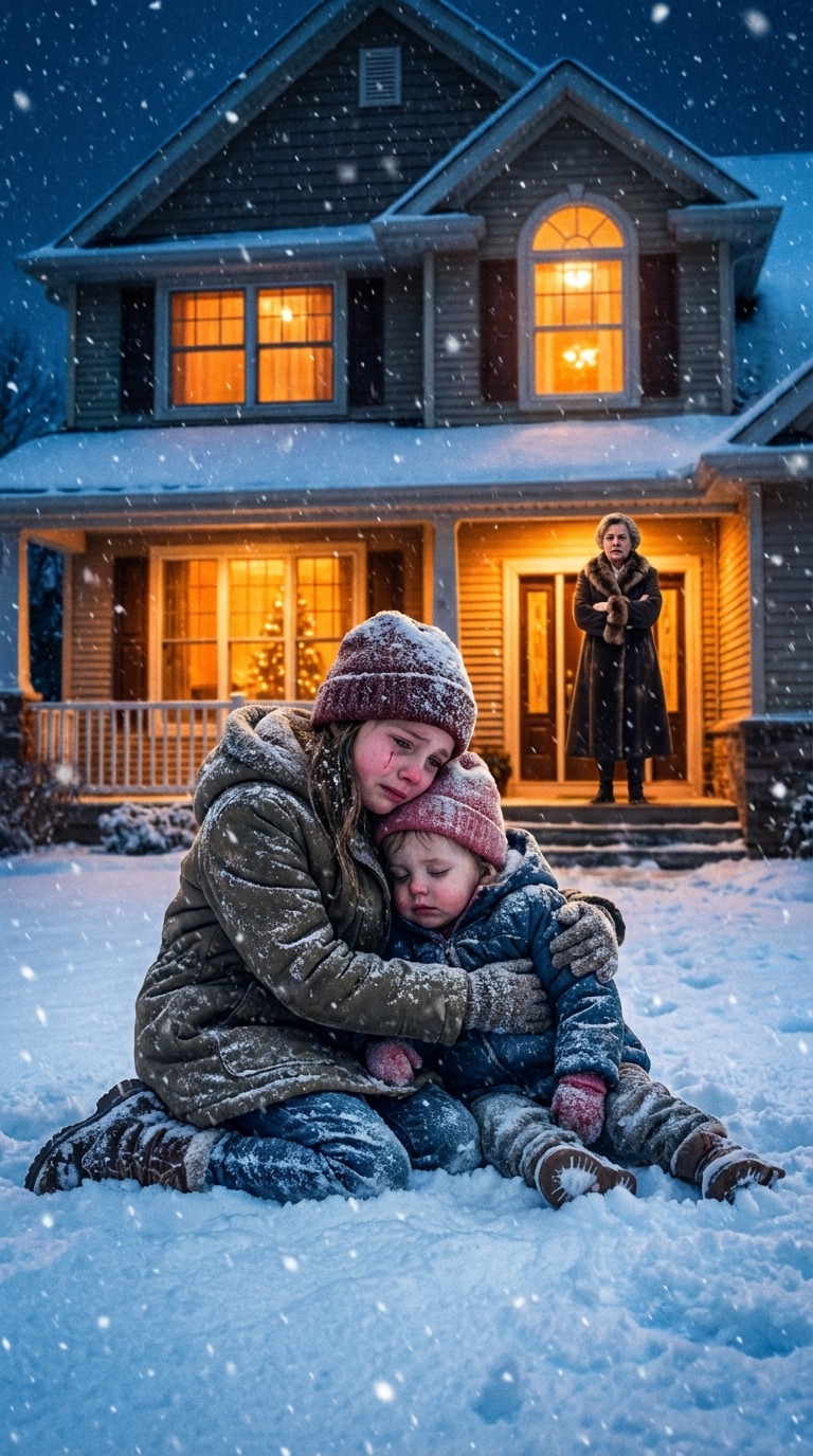 „Dziewczyny, biegnijcie na werandę” – rozkazałam, nie wyłączając silnika, gdy śnieg walił w przednią szybę. „Babcia i dziadek na was czekają. Muszę natychmiast wracać do taty”.